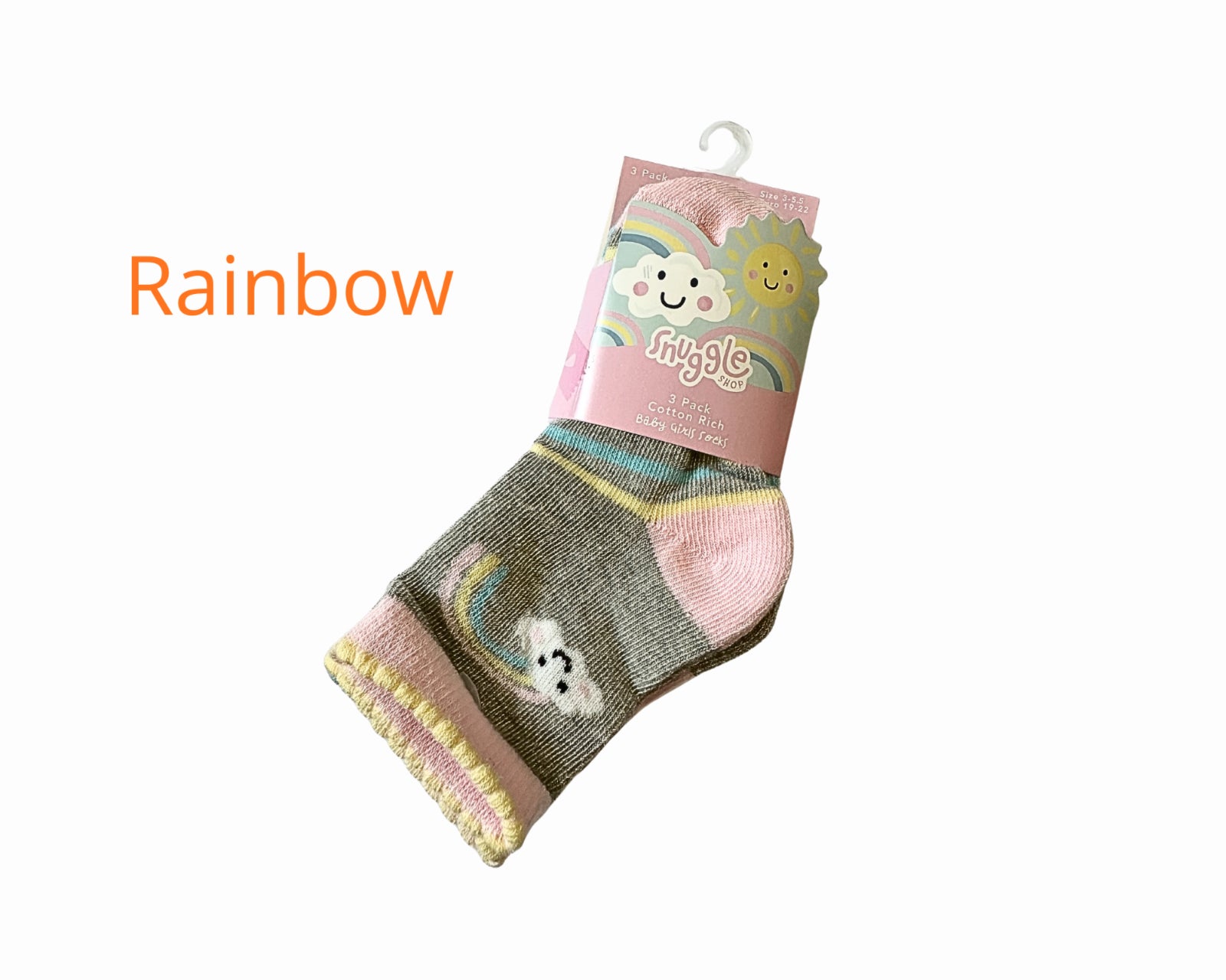Baby Girls Rainbow & Unicorn Socks – 3 Pack (0-0 to 3-5.5)